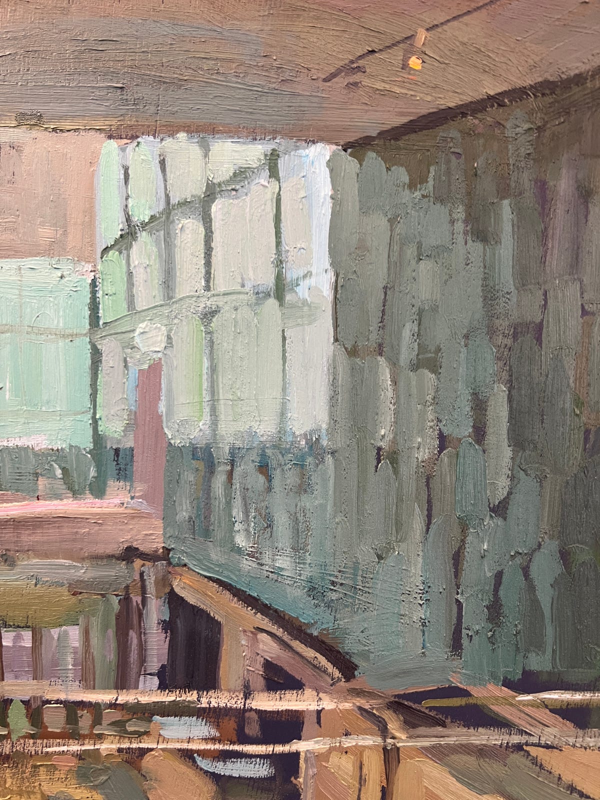 Brian observes light with unusual sensitivity, not simply as illumination but as the force that organizes the painting itself. Planes emerge through shifts in brightness, atmosphere is built through subtle transitions, and space is defined by the way light settles, diffuses, or quietly disappears.